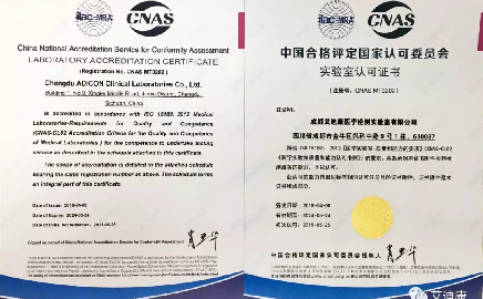 热烈祝贺成都艾迪康顺利获得ISO 15189:2012换证复评认可证书