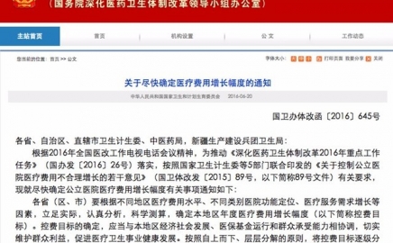 卫计委:力争 2017 年底医疗费用增幅降到 10% 以下